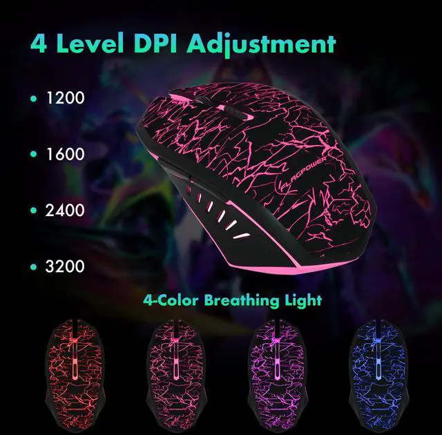 - 4 levels DPI(1200/1600/2400/3200) adjustable gaming mouse