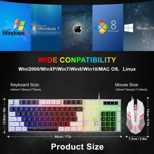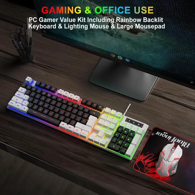 Gaming keyboard and mouse mouse and keyboard combo usb wired keyboard and mouse combo backlit black and white keyboard computer keyboard & mouse combos for gamer ps5 keyboard and mouse light up keyboard xbox membrane keyboard ergonomic quiet
