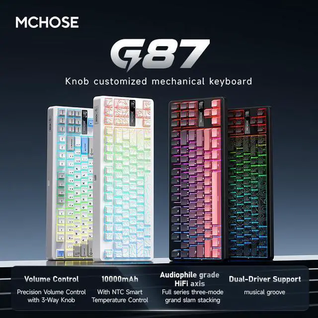 MCHOSE G87 Wireless Mechanical Keyboard,Tri-Mode BT/2.4GHz/USB-C Hot Swappable Custom Keyboard, 10000mAh Battery, Gasket Structure,RGB Backlit Gaming Keyboard for Win/Mac