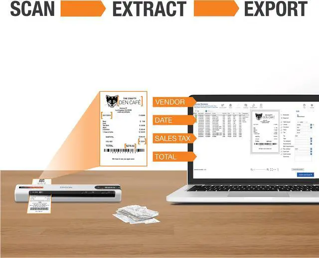 Wireless, ultra fast, ultra small, lightweight receipt scanner designed for managing receipts/invoices.
