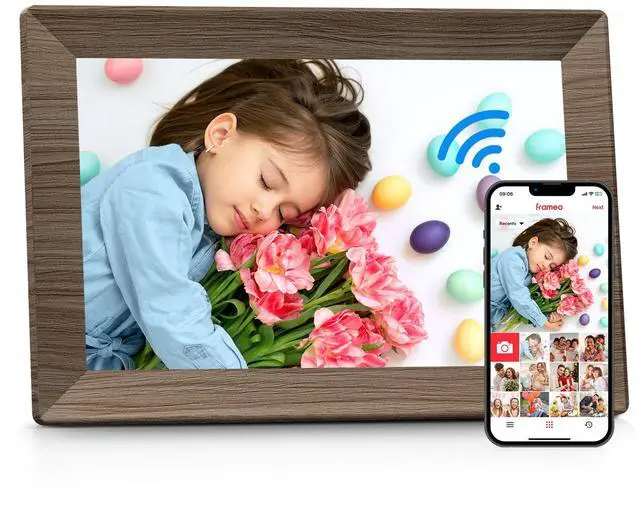 10.1" Digital Picture Frame with 32GB Memory Wood WiFi Electronic Photo Frame 1280 x 800 IPS Touch Screen Auto-Rotate Slideshow Wall Mountable Share Photos/Video Remotely Anywhere