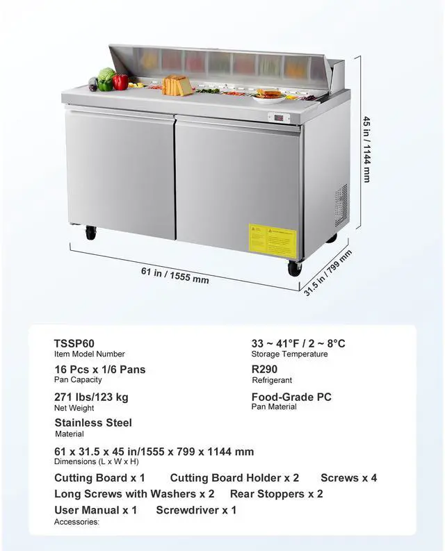 Dimensions (L x W x H): 61 x 31.5 x 45 inch/1555 x 799 x 1144 mm (with cutting board installed)
