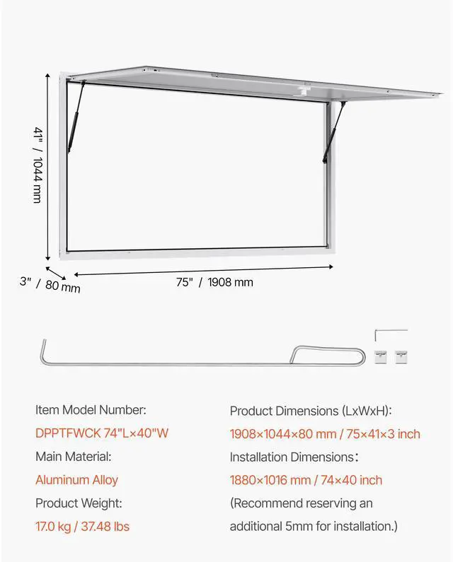 Installation Dimension: 1880x1016 mm / 74x40 inch