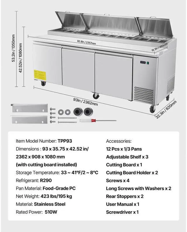 Product Size (L x W x H): 93 x 32.3 x 42.52 inch/2362 x 820 x 1080 mm