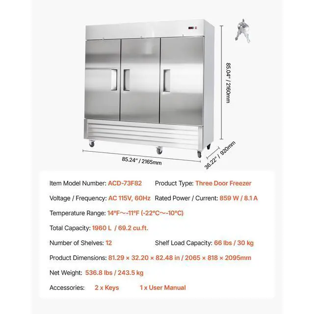 Total Capacity: 1960 L / 69.2 cu. ft.
