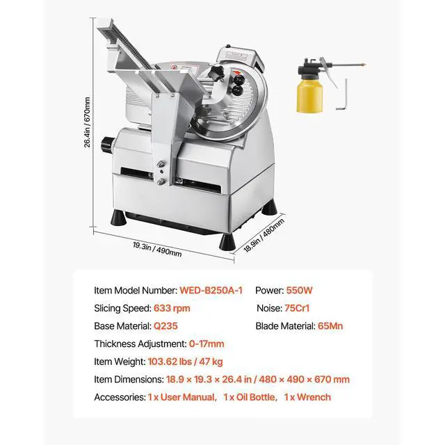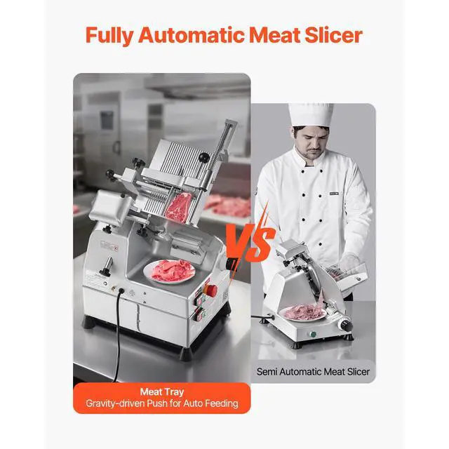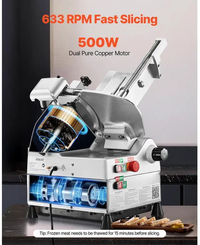 Automatic Meat Slicer, 500W, Electric Deli Slicer Machine with 10 inch Sharp 75Cr1 Steel Blade, 0-0.67 inch Adjustable Thickness, 633 RPM Fast Slicing, for Frozen Meat, Cheese, and Bread
