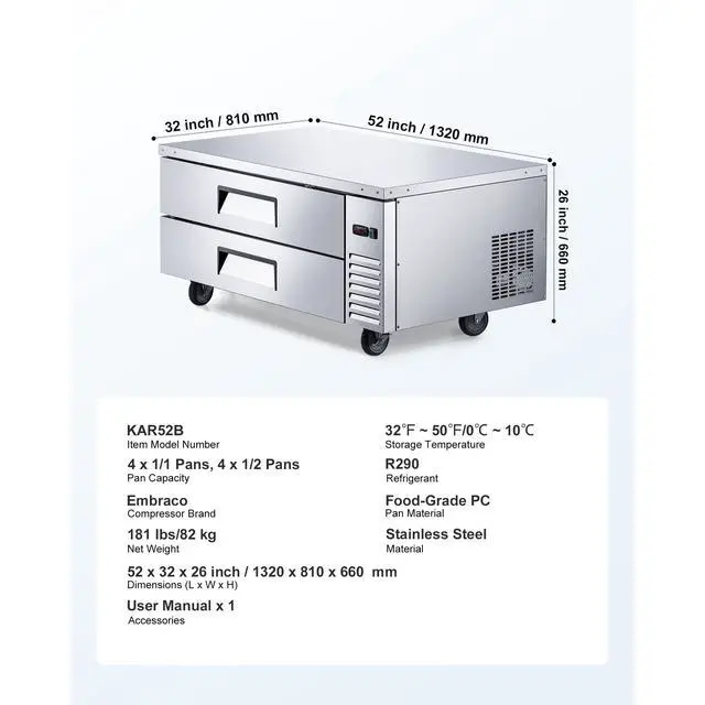 Dimensions (L x W x H): 52 x 32 x 26 inch/1320 x 810 x 660 mm