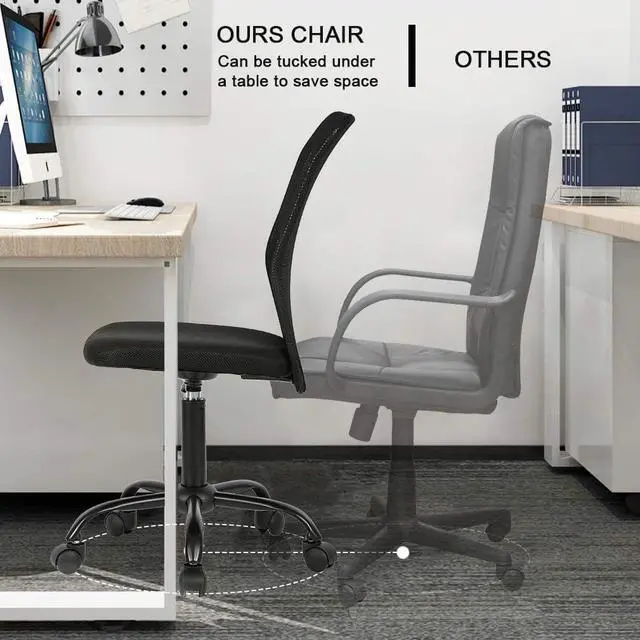 RELIABLE COMFORT - Our mesh chair using high-density sponge cushion, office chair with a middle back design, can provide good Lumbar Support. The padded mesh seat is thick and resilient. The computer chair uses a high breathable mesh back to make your back feel comfortable and preventing body heat and keeping your hips and legs cool and sweat-free.