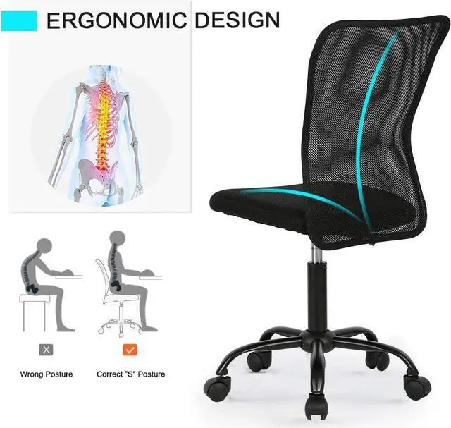 ERGONOMIC DESIGN- The cushion of office chair, lumbar support accord with human body engineering design, The Office desk computer mesh chair curved backrest can perfectly line up with human body line and support your spines natural curve. The lumbar support system resembles a pair of hands, pushing up and holding your low back. suit long time use.