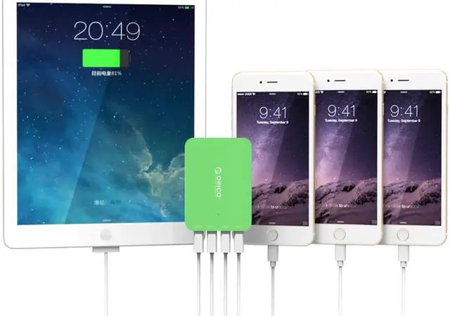 ORICO 20W 4 ports USB Super Charger works with most USB devices including smartphones, tablets, notebooks and more popular compatible devices are: iPhone 6/6 Plus, iPhone 5/5s/5c/4/4s, iPad/Mini, iPod, LG G3, Samsung Galaxy, Amazon Fire Phone, HTC One, Nexus and etc.