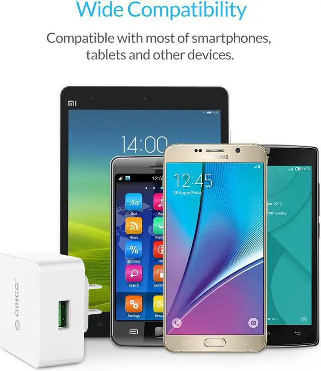 Please Note: This QC3.0 charger and most of QC3.0 charger on the market can't charge iPad and Samsung tablet. (except for ORICO QCK-1U)