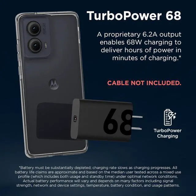 Motorola Original- TurboPower 68W (MC-681) wall charger with 24 month (2 year) limited manufacturer's warranty (no cable)