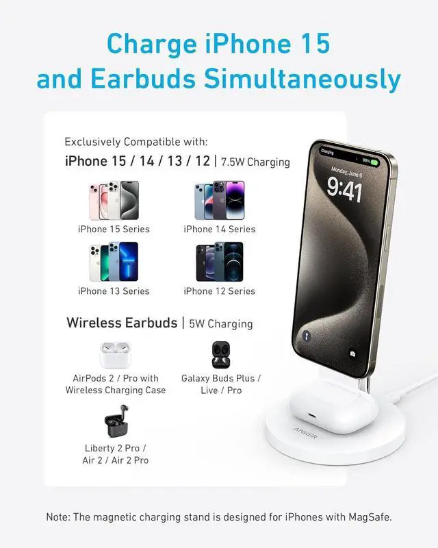 - Provides 7.5W max charging for the iPhone 12 series and 5W max charging for AirPods.