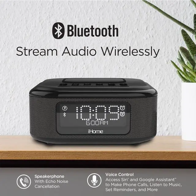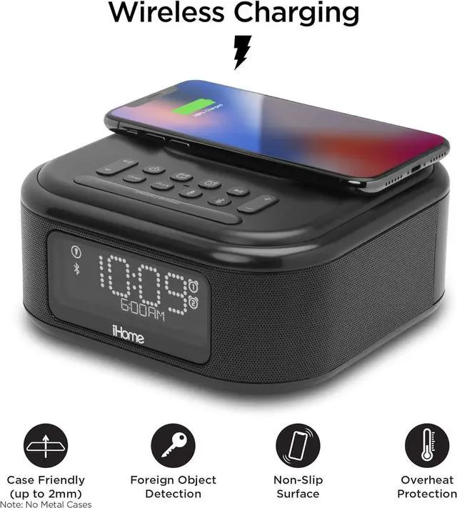 This ItemiHome iBTW23 Wireless Charging Bluetooth Alarm Clock with Speakerphone & USB Charging Port for iPhone X 8/8Plus & MoreRecommendationsOdokee Wireless Charging Alarm Clock Radio: Qi Certified Fast Wireless Charger for iPhone Samsung - 10W Stereo Bluetooth Speaker - Dimmable Digital Clock with FM Radio for Bedroom Black USCCE Alarm Clock Bluetooth FM Radio: 10W Stereo Sound Speaker - Fast Wireless Charging for iPhone Samsung - Dimmable Clock Radio for Bedroom JBL Horizon 2 Bluetooth Clock Radio Speaker with FM - Black (JBLHORIZON2BLKAM) Alarm Clock Radio with Bluetooth Speaker, Digital FM Radio, Dual Alarm with Snooze, Large LED Display, Dimmer Control, USB Charging Output and Night Light iTOMA CKS708 iHome Timex RediSet Dual Alarm Clock with Dual USB Charging, Black (T129B) and Extreme Battery Backup,