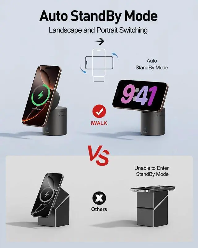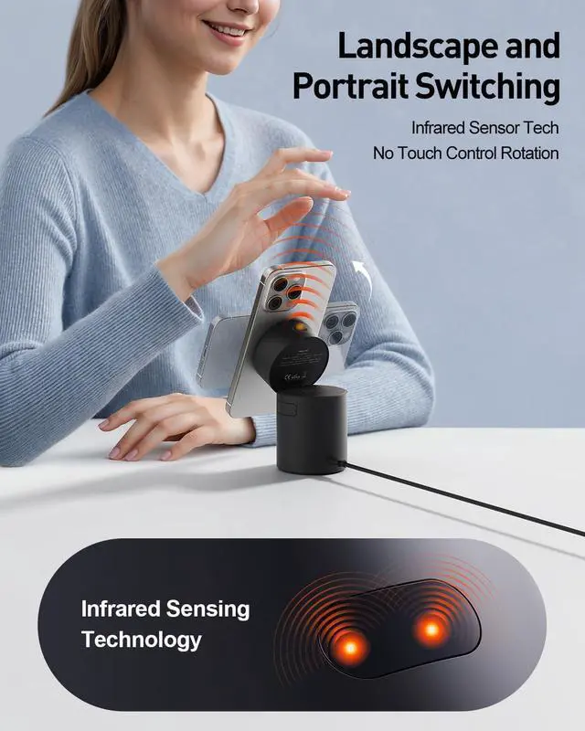 Up to 65°adjustable viewing angle, and free switching between horizontal and vertical screens when the phone is in wireless charging