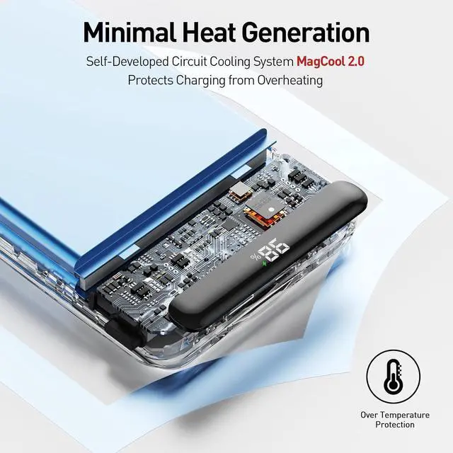 Cool and Reliable Never worry about overheating again. The magnetic portable charger advanced self-developed cooling system ensures stable, safe charging. This gives you peace of mind whether you're charging overnight or during intense daily use.