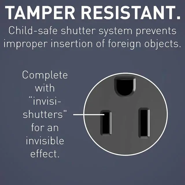 • PROTECTS CHILDREN: Patented shutter system helps prevent improper insertion of foreign objectsnow with black "invisi-shutters" for an invisible effect preferred by end users