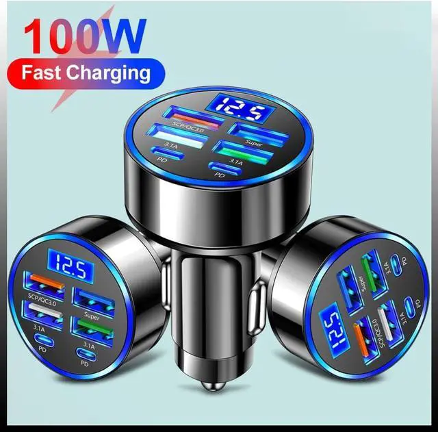 ?? [Wide compatibility] Compatible with cell phones tablet PCs car recorders and other USB devices charging widely used in 12-24V voltage input mainstream car models compatible with a variety of models of cigarette lighters including family cars business SUVs off-road sports cars etc.?? [PD&QC 3.0 Ultra Fast Charger] 6-in-1 Multi-Port Charger Adapter is made of ABS + PC material with 2PD ports and 4USB ports. The 6-port car charger is a perfect gift for you when you travel.?? [VOLTAGE DETECTION] Cigarette lighter USB charger monitors your car's battery and electrical system and displays your car's voltage on the screen.
