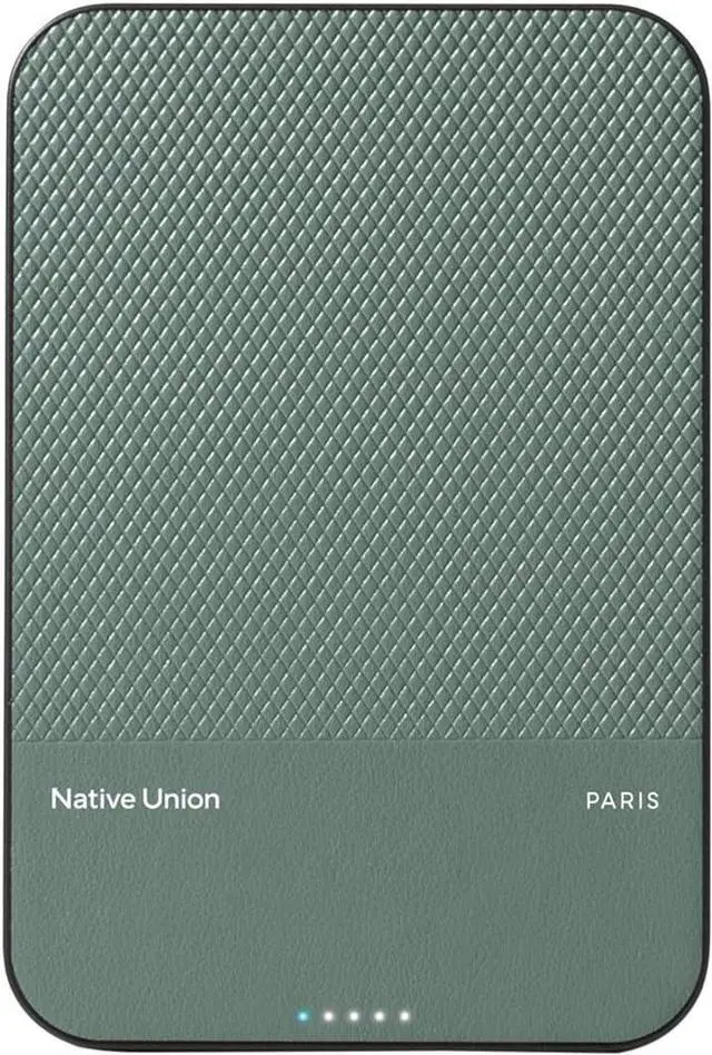 Native Union (Re)Classic Power Bank | Magnetic - MagSafe Compatible 5000mAh 15W Portable Charger - USB-C Cable Included - Compatible with iPhone 16, 16 Plus, 16 Pro, 16 Pro Max, AirPods (Slate Green)