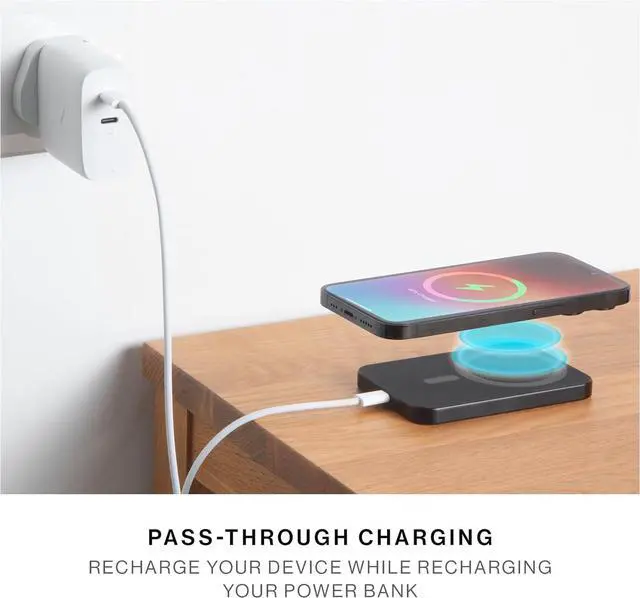• COMPLETE WITH A CABLE: Comes with a 15cm USB-C to USB-C cable to recharge your power bank when connected to a power source, and with pass-through charging support, simultaneously charge your device while recharging your power bank.