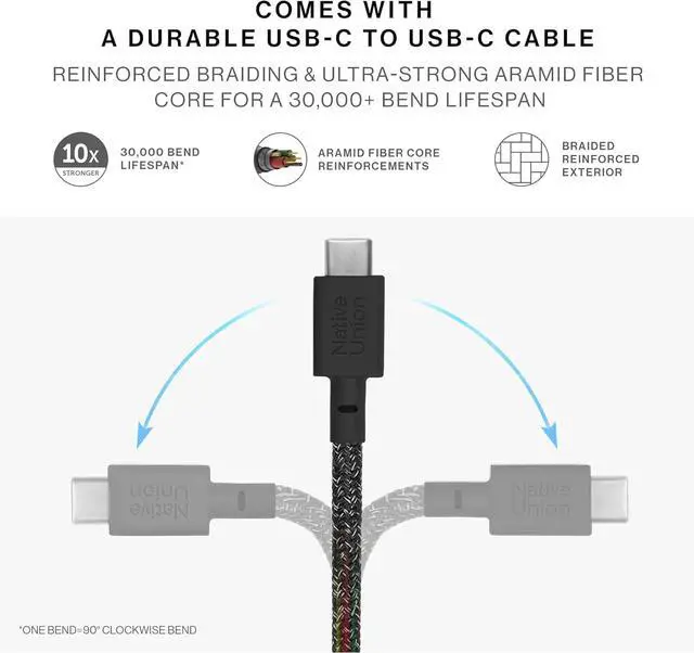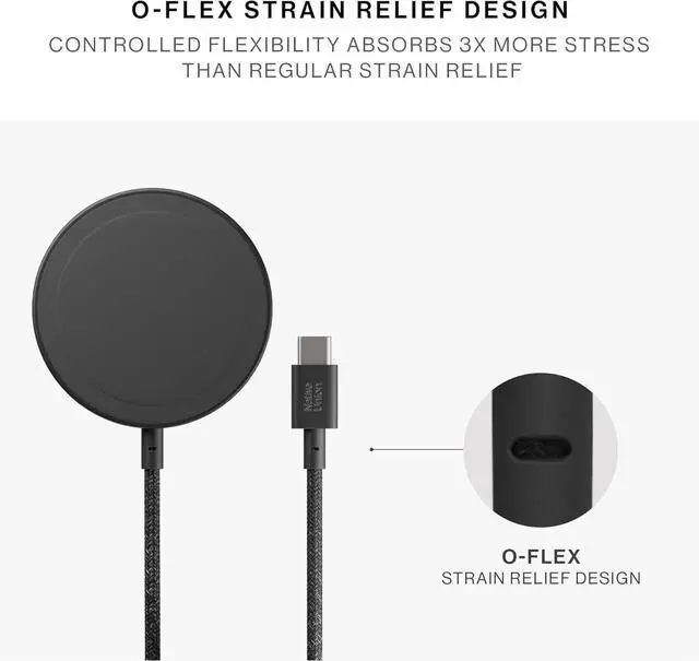 Designed to be thin and lightweight with a 5ft / 1.5m length that balance flexibility of placement with easy stowage, reinforced braiding to withstand wear and tear, and a built-in cable belt to stay tangle-free in your bag so you can have wireless power, wherever you are.