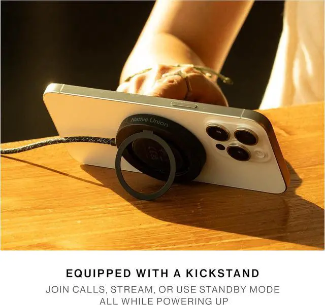 More than just a charger, SnapStand Magnetic Wireless Charger has a kickstand for a convenient hands-free viewing experience. Continue streaming, surfing, taking calls, viewing notifications, or using StandBy mode all while powering up.