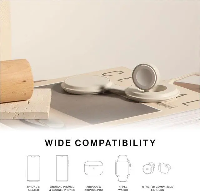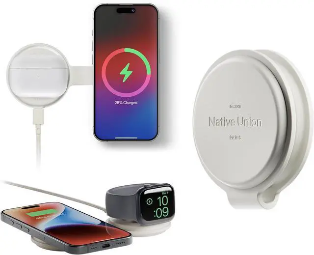 Similar in size to your AirPods or Apple Watch, Voyage 2-in-1 Magnetic Wireless Charger has the power and convenience of your at-home multi-device charger but can be carried around with you on every holiday or work trip. Just slip it into your pocket, it's that simple.