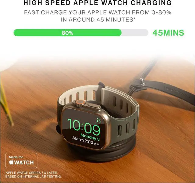 • FAST CHARGE YOUR APPLE WATCH: Recharge your Apple Watch Series 9 all the way to 80% in just around 45 minutes with the dependable Made for Apple Watch certified puck.
