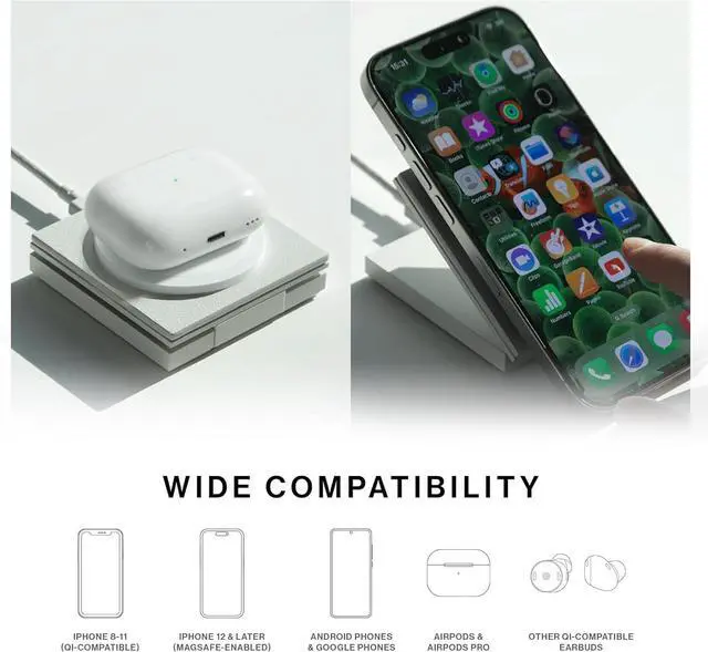 Meet the new and improved single device wireless charger. Charge your MagSafe enabled iPhone flat or upright; charge your AirPods, earbuds, and all your other Qi-compatible devices when folded flat. Wide compatibility, high versatility, and faster charging for all your tech.