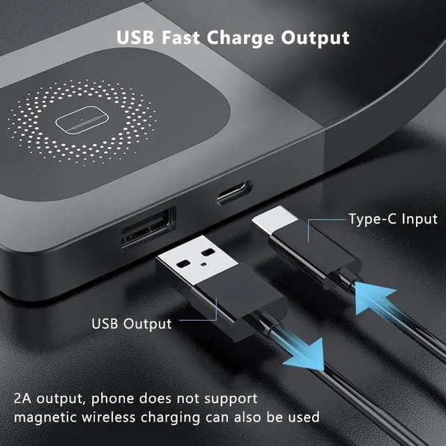 USB fast charge output: 2A output, mobile phone does not support magnetic suction wireless charging can also be used
