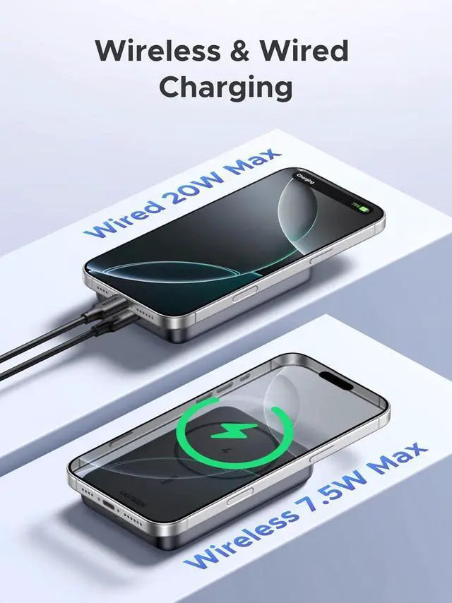 The video showcases the product in use. The video guides you through product setup. The video compares multiple products. The video shows the product being unpacked. Merchant video UGREEN 10000mAh Magnetic Battery Pack Power Bank