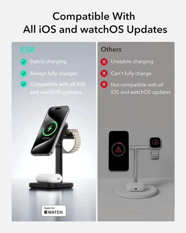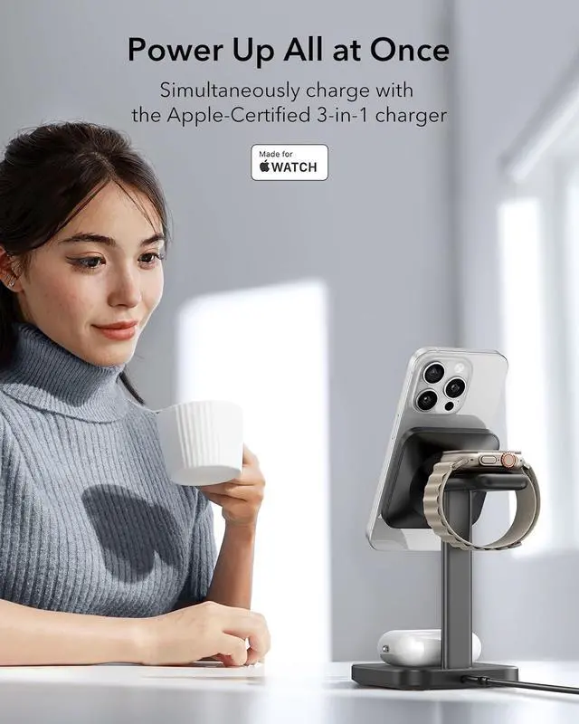 Strong Magnetic Lock: 1,000 g of magnetic holding force keeps your phone powerfully in place during charging as built-in magnets in the Watch charger and AirPods charging pad ensure instant, secure alignment