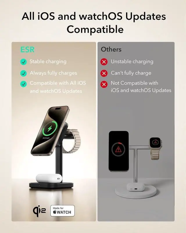 Strong Magnetic Lock: 1,000 g of magnetic holding force keeps your phone powerfully in place during charging as built-in magnets in the Watch charger and AirPods charging pad ensure instant, secure alignment