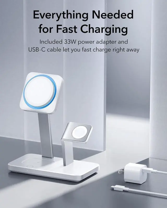 Official MagSafe and Apple Watch certification let you charge your iPhone at 15W and Apple Watch at 5W, twice as fast as non-certified chargers. That means safer, more reliable charging at faster speeds and your everyday essentials fully charged even quicker.