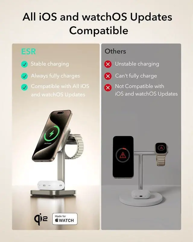 • Strong Magnetic Lock: 1,000 g of magnetic holding force keeps your phone powerfully in place during charging as built-in magnets in the Watch charger and AirPods charging pad ensure instant, secure alignment