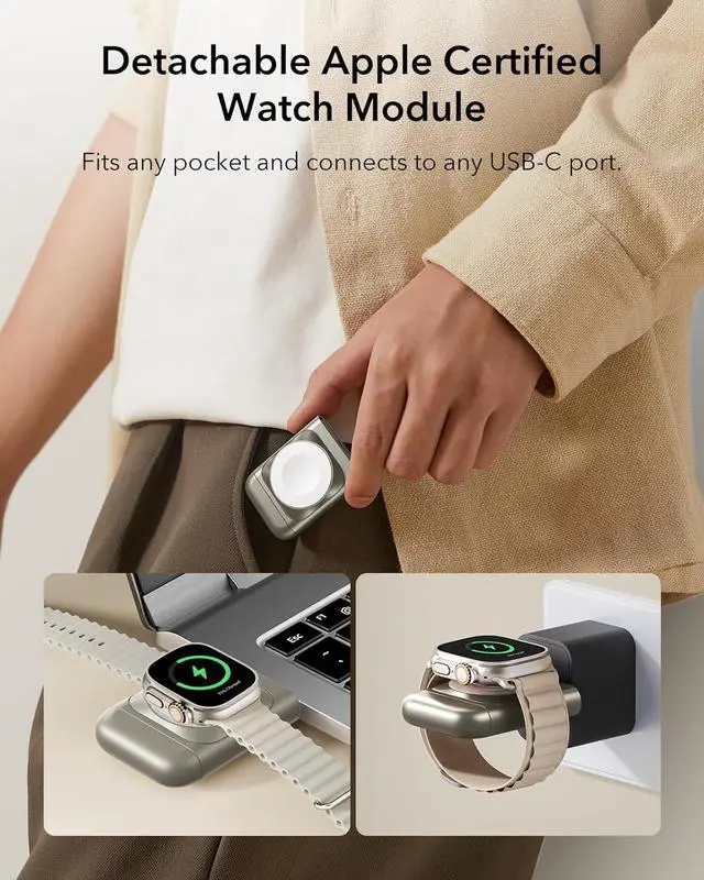 • Portable Watch Charger: small, lightweight USB-C charger lets you power up on the go via numerous devices, so you can enjoy tangle-free magnetic wireless charging for your Watch anytime, anywhere