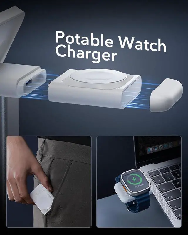 • Portable Watch Charger: small, lightweight USB-C charger lets you power up on the go via numerous devices, so you can enjoy tangle-free magnetic wireless charging for your Watch anytime, anywhere