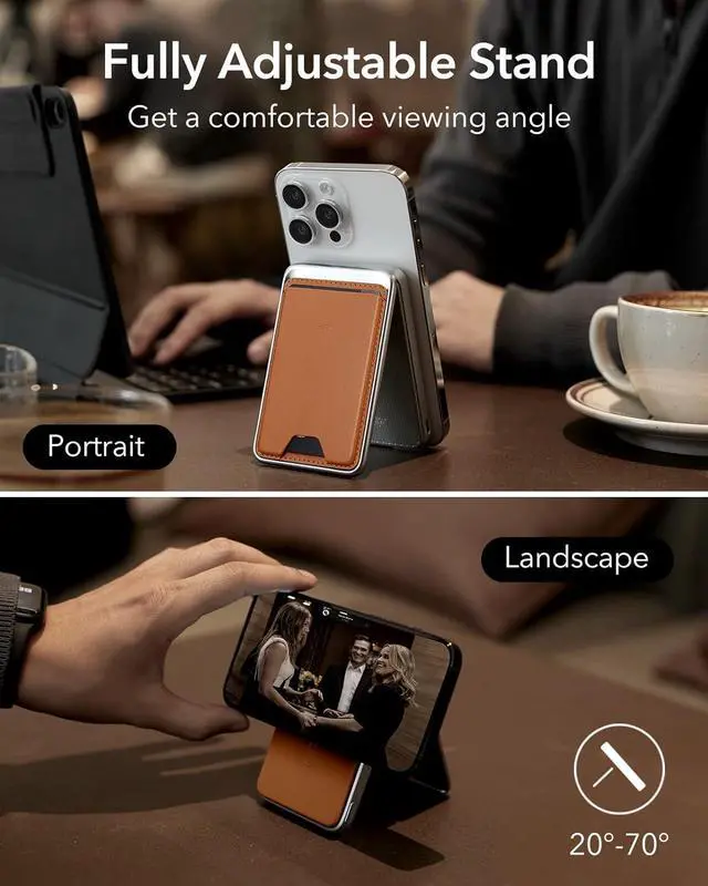 • 3-in-1: charge your phone, keep your cards safe, and enjoy hands-free viewing in a sleek, pocket-friendly package