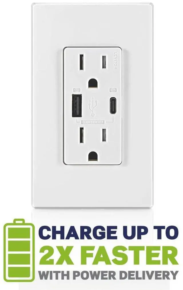 Levitons line of Power Delivery (PD) compatible USB chargers are engineered and tested for compatibility with more of the newest devices with built-in PD technology: from phones to tablets, laptops and more! Ideal for residential and commercial applications including kitchens, bedrooms, home offices, college dormitories, airport lounges, hospitals, salons and spas, hotels, meeting rooms, cafes, restaurants and more.