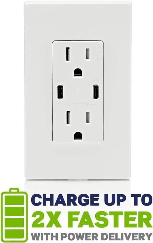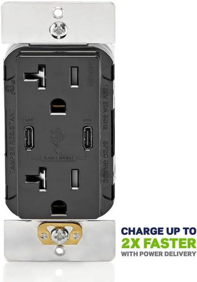 Deliver hours of enjoyment with just minutes of charging. Levitons Power Delivery-enabled in-wall chargers support even the most demanding phones, tablets and laptops. Power Delivery, a state-ofthe-art charging technology that supplies a higher level of power for faster charging, is built-in to a variety of Leviton in-wall chargers, including the industrys highest power USB in-wall charger, the T5636 - featuring 60W of power on a single port. With built-in overcurrent protection and an internal thermoregulator to help keep valuable electronics safe, Leviton USB In-Wall Chargers are backed by the quality you expect from the leader in electrical safety.