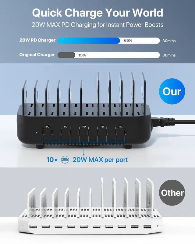 | 10 USB C | 1 USB C + 5 USB A | 6 USB A | 2 USB C + 5 USB A | 1 USB C + 6 USB A |