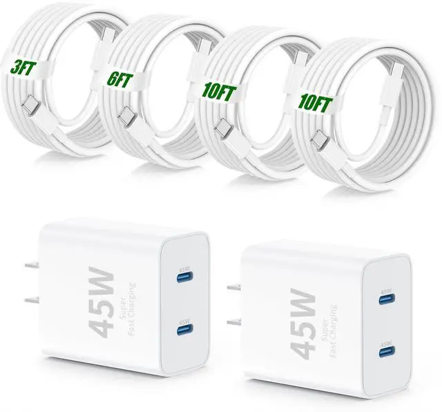 45W Dual Port Fast Charger for iPhone 17 16 15 Pro Max,2Pack 45W Double USB C Fast Charging Block with 6/6/10/10FT Long C to C Cable for iPhone 17 air /17 Pro/16 Pro/iPad 10/11th-White