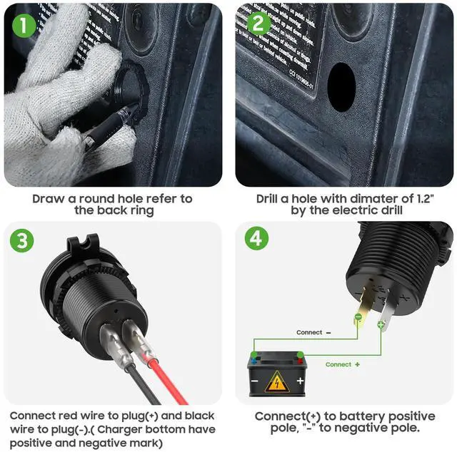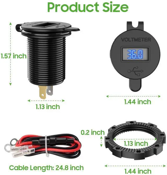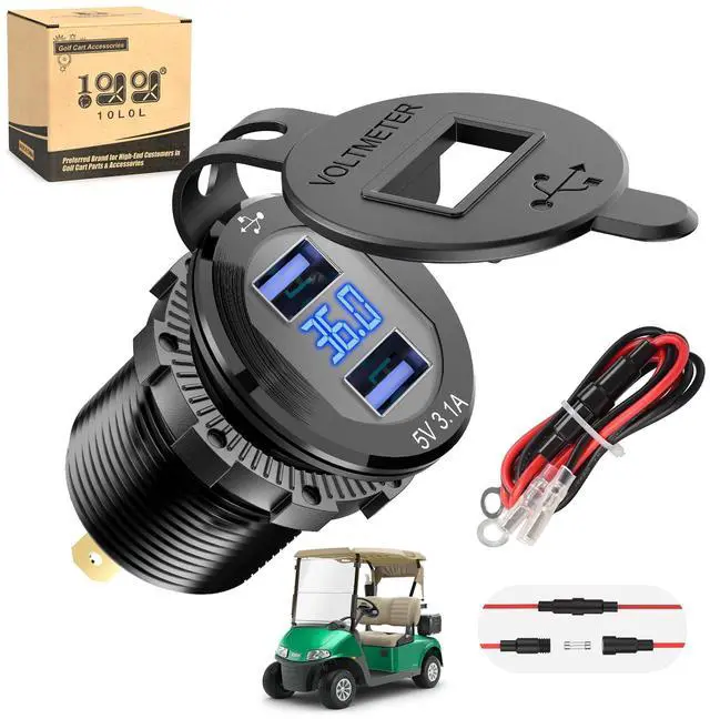 3.1A Dual USB outlet accepts 12V-48V power input, support two devices simultaneously such as phone, tablet, GPS, camera, power bank and all QC3.0 devices, universal for Yamaha Club Car EZGO golf cart, Car, Marine, Boat, Motorcycle, Truck, RV etc