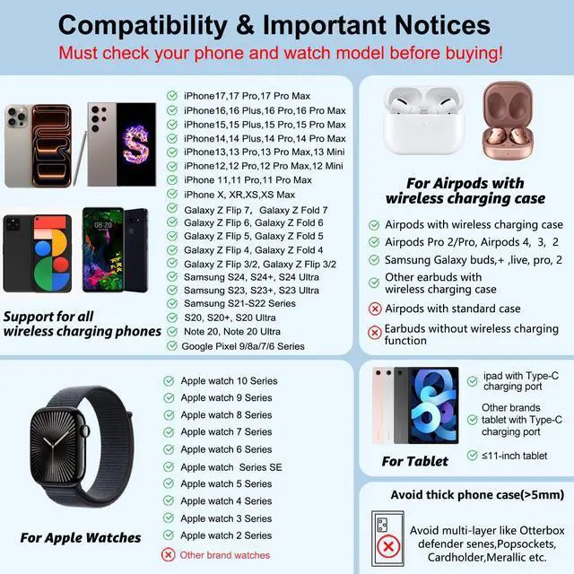 Apple watch phone airpods charging station--Widely Compatible with Phone, Headphones: