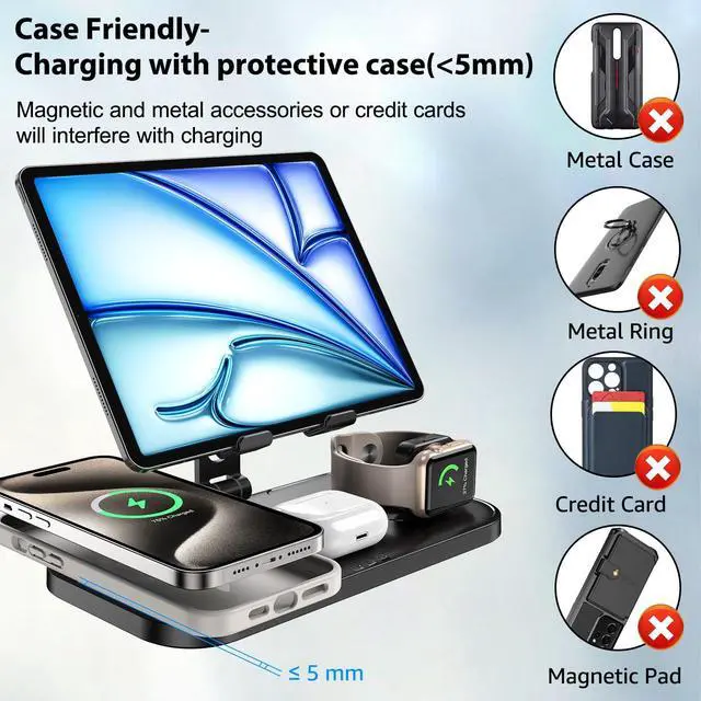 Designed for apple charging station : For apple all in one charging station can charge iPhone, Apple Watch, ipad and AirPods at the same time.