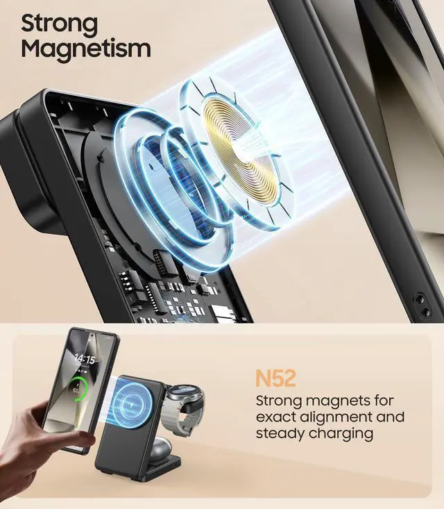 | Compatible Phone Models | [Phones]Galaxy S25 Ultra/S25 Plus/S25/S25 Edge/S24 Ultra/S24 Plus/S24/S23 Ultra/ S23 Plus/S23 /S22 Ultra/ S22 Plus/S22/S21 Ultra/ S21 Plus/S21/ S20 Ultra/S20 Plus/S20; Galaxy Z Fold /Z Filp 7/6/ 5/4/3/2/1; Galaxy S10/S10e/S10+/S9/S9+; Galaxy Note20/10/9/8; [iPhone] iPhone 16e/16/16 Pro/16 Plus/16 Pro Max/15/15 Pro/15 Plus/15 Pro Max/14/14 Pro/ 14 Pro Max/14 Plus/iphone 13/12/11(Pro/Pro Max)/Xs Max/Xs/Xr/X/ SE / 8/8 Plus(For iPhone 12-16 series, it supports magnetic charging with the phone alone or with a magnetic case); [Google Pixel] Google Pixel 9 Pro/ 9 Pro XL/ 9/9a /8 Pro/ 8a/ 8/ 7 Pro/ 7a/ 7; Pixel 6 Pro/6, Pixel 5, Pixel 4/4XL, Pixel 3/3XL and Other Qi-enabled Phones |
