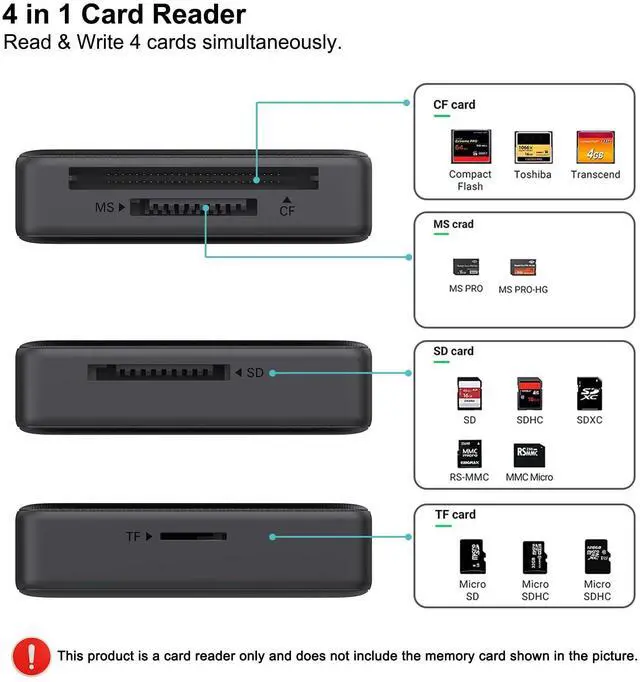 | SD/TF/MS/CF | SD/TF | SD/TF | SDXC/SDHC/SD/MMC/Micro SD/... | CFexpress Type B | CFexpress Type A |