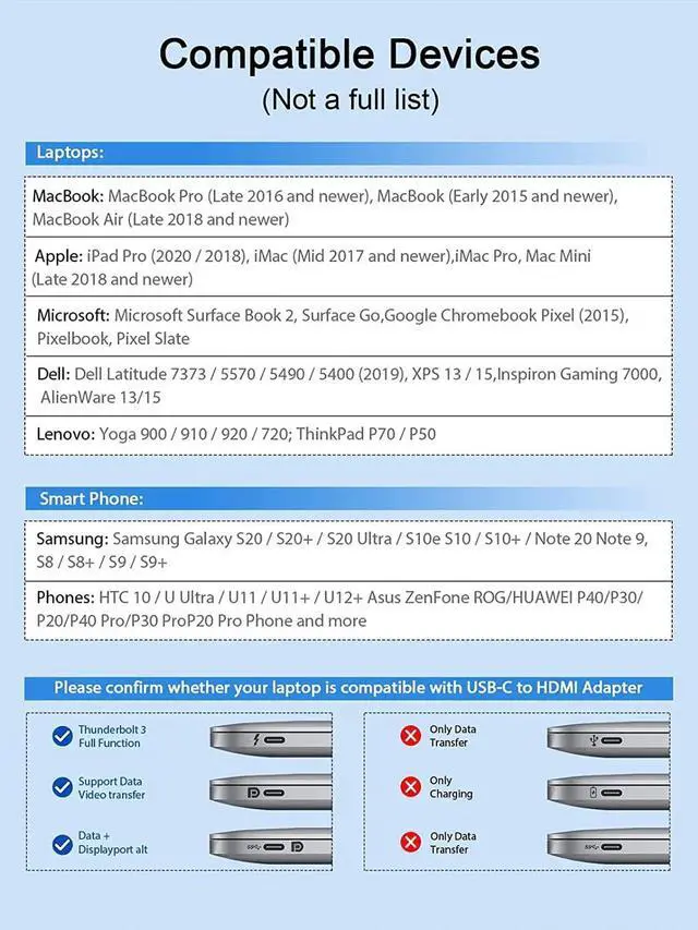 | Note | Make sure your laptop or phone support USB-C with DP Alt Mode. If you are not sure, please feel free to let us know, we are very glad to help you to check. |