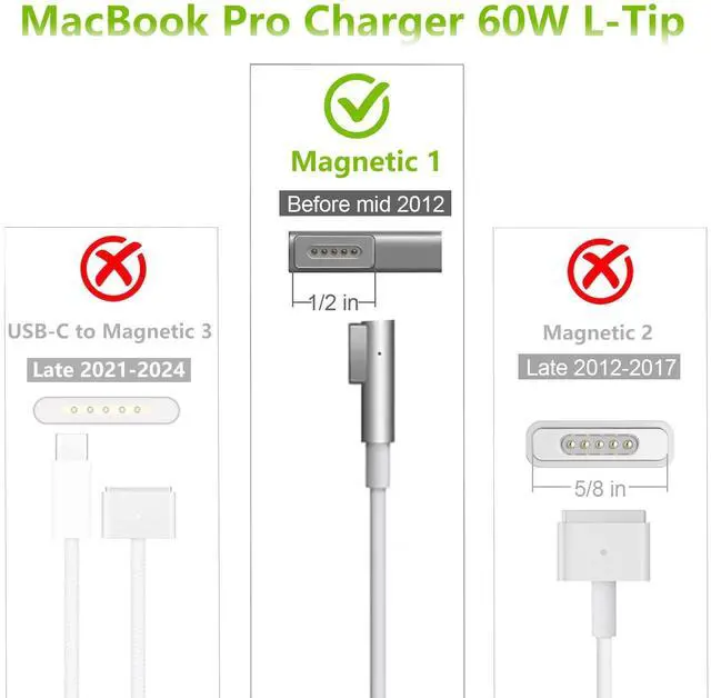 Mac Book Pro Charger 60W L-Tip Mag 1 Power Adapter, Compatible with Mac Book Pro 13 inch (Before Mid 2012 Models)