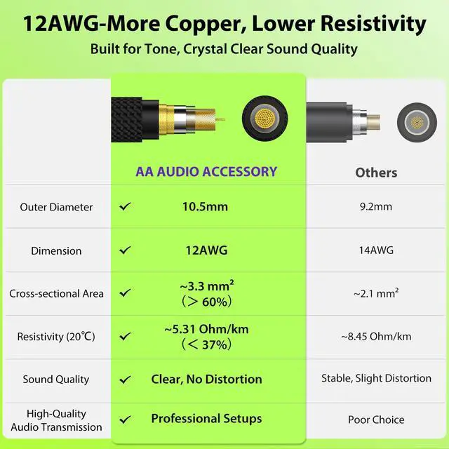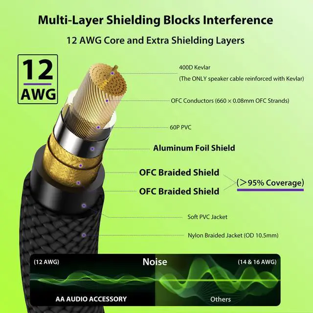 | True 12 AWG, OD 10.5mm | REAN silentPLUG Connectors | Gold Plated Connectors | Max Load Capacity: 6.6lbs | Max Load Capacity: 6.6lbs | Upgraded 4-Screw Base | Gold-Plated Rean Connectors |